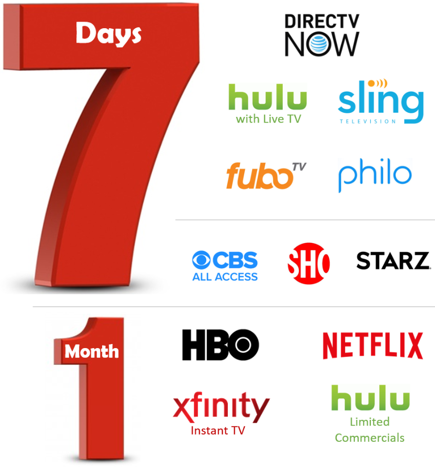 Freed of the anchor (or tether, depending on one's POV) of set-top boxes, video service providers have gone fishing with the tempting lure of free trials-- typically 7 days in length.